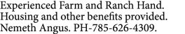 Experienced Farm and Ranch Hand. Housing and other benefits provided.…