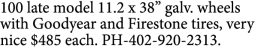 100 late model 11.2 x 38” galv. wheels with Goodyear…