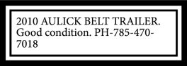 2010 AULICK BELT TRAILER. Good condition. PH-785-470-7018