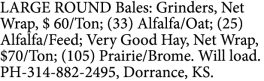 WANTED TO Buy: Round or square alfalfa bales. Steve, PH-620-357-4095.Feed / Grain, HPJ Classified