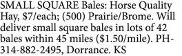 SMALL SQUARE Brome. Eastern, KS PH-620-341-2100Feed / Grain, HPJ Classified