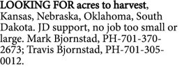 LOOKING FOR acres to harvest, Kansas, Nebraska, Oklahoma, South Dakota.…