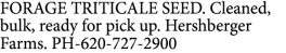 FORAGE TRITICALE SEED. Cleaned, bulk, ready for pick up. Hershberger…