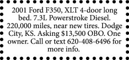 2001 Ford F350, XLT 4 door crew cab long bed.…