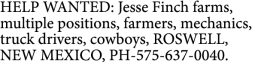HELP WANTED: Jesse Finch farms, multiple positions, farmers, mechanics, truck…