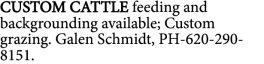 CUSTOM CATTLE feeding and backgrounding available; Custom grazing. Galen Schmidt,…