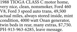 1988 TIOGA CLASS C motor home, very nice, clean, nonsmoker,…