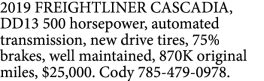 2020 DAY CAB Freightliner Cascadia. 450,000 original miles. DD13 550…