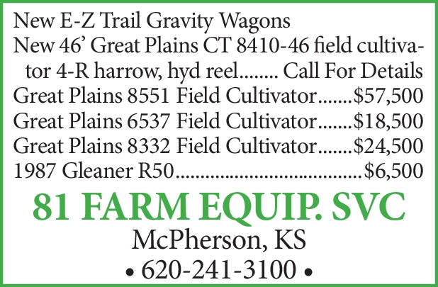 81 Farm Equipment McPherson, KS 620-241-3100