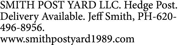 SMITH POST YARD LLC. Hedge Post. Delivery Available. Jeff Smith, PH-620-496-8956. www.smithpostyard1989.com