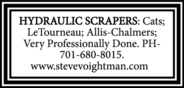 HYDRAULIC SCRAPERS: Cats; LeTourneau; Allis-Chalmers; Very Professionally Done. PH-701-680-8015. www.stevevoightman.com