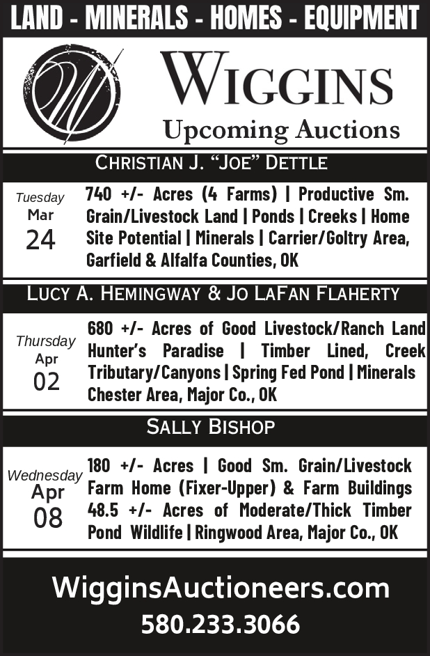 Wiggins Auctioneers & Realty – Your Ag & Mineral Marketing Source Since 1963! wigginsauctioneers.com Visit Our Website 1.800.375.3773
