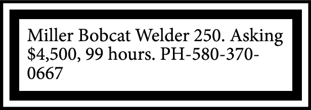 Miller Bobcat Welder 250. Asking $4,500, 99 hours. PH-580-370-0667