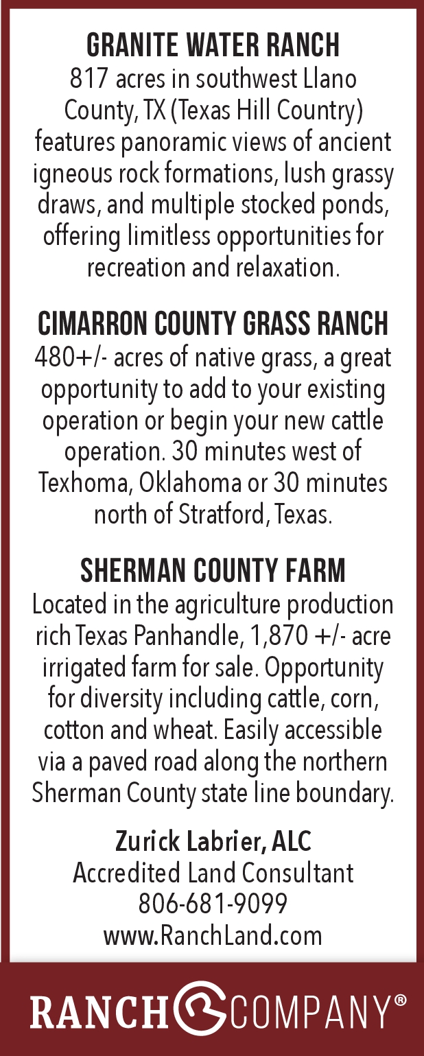 Granite Water Ranch – Cimarron County Grass Ranch – Circle I Ranch – Sherman County Farm – WW Ranch