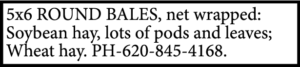 OATS, SUDAN FEED, CORN STALKS. Square bales. Loaded or delivered. PH-620-338-2217.