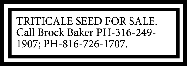 TRITICALE SEED FOR SALE. Call Brock Baker PH-316-249-1907