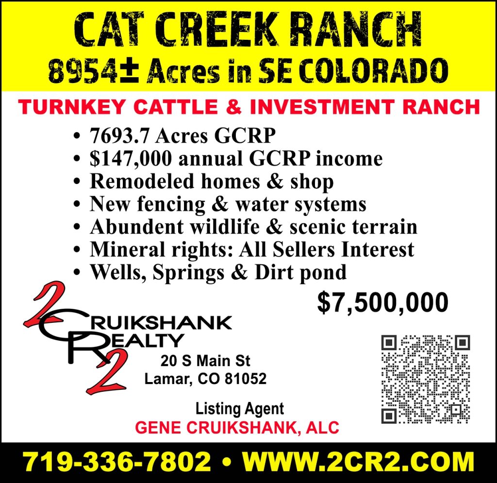 CAT CREEK RANCH 8954+- Acres in SE Colorado – Turnkey Cattle & Investment Ranch – Cruikshank Realty