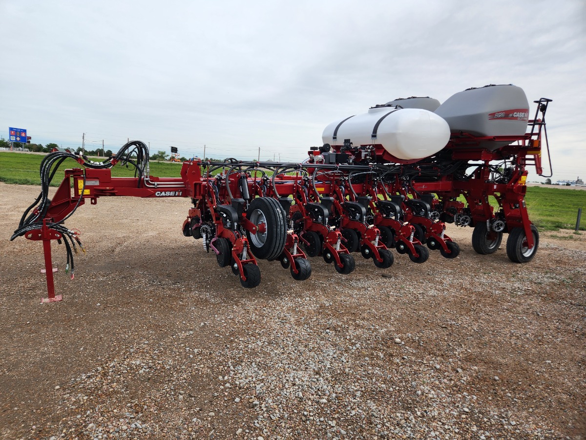 Number of Rows: 16, Mount Type: 2 point hitch, Markers: no, Row Cleaners: Shark tooth w/depth bands & clean sweep, Liquid Fertilizer: 540 gallon tank for in-furrow fertilizer, Bulk Fill, Electric Drive Vset Precision Meter w/row by row overlap and curve compensation, Hydraulic Drive with 12V 200 amp alternator, Narrow RID Gauge Wheels, DeltaForce automatic Hydraulic Down Pressure, 2 Stage In-Cab Adjustable Closing System, Hydraulic Wing Down Force, Rear Towing Hitch, Deluxe Air Compressor, 22 GPM PTO Pump