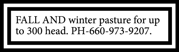 FALL AND winter pasture for up to 300 head. PH-660-973-9207.