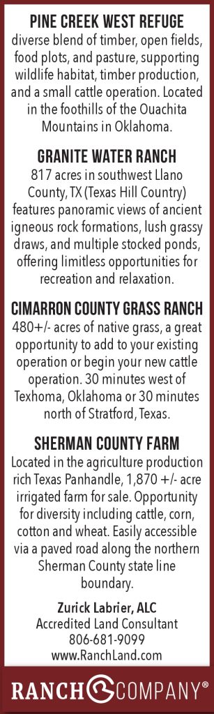 Granite Water Ranch – Cimarron County Grass Ranch – Circle I Ranch – Sherman County Farm – WW Ranch