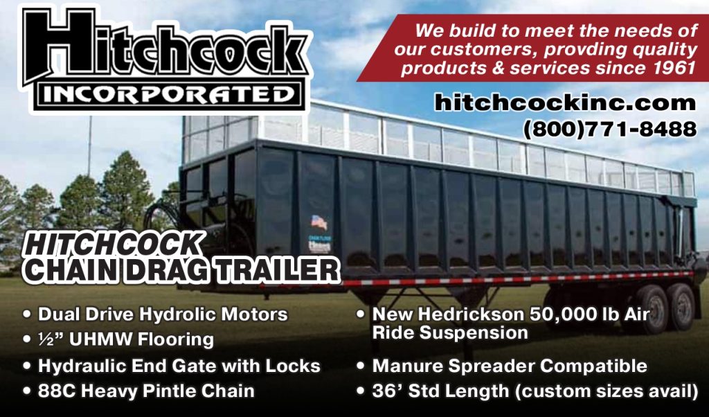 Hitchcock Inc Trailers – ALL PURPOSE DUMP TRAILER Tapered Box for easy unloading 45 degree inside corners Hydraulic End Gate (full opening) —Welded soild throughout Three grain gates in end gate Landing Gear Harsh Hoist (50° dump angle) All new axels and suspension. We build to meet the needs of our customers, provding quality products & services since 1961 (800)771-8488 – hitchcockinc.com