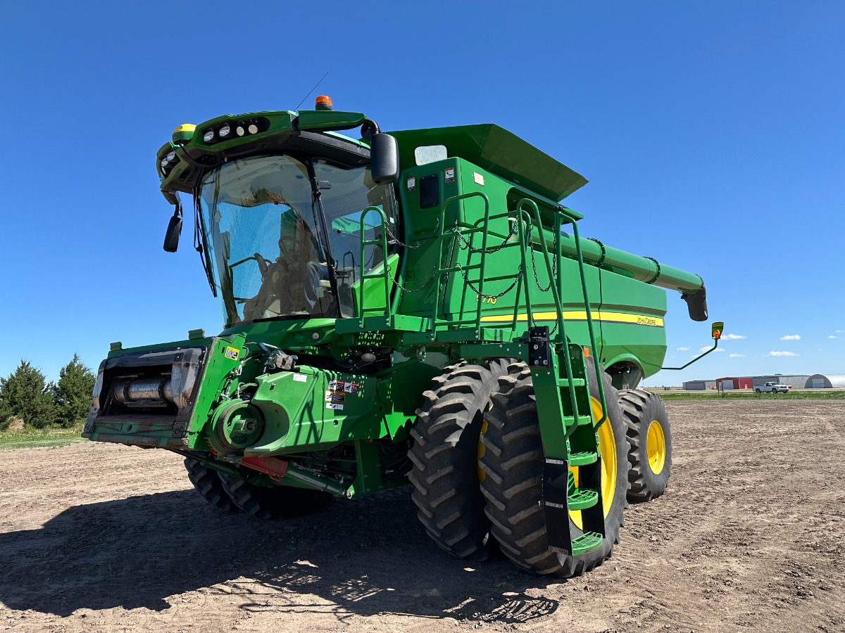 3168 engine hours, 2114 separator hours, Drive Tires: 520/85R42 DUALS, Steering Tires: 23.1R26, chopper, pusher axle, 5 speed feeder, weight pads in grain tank, leather seat