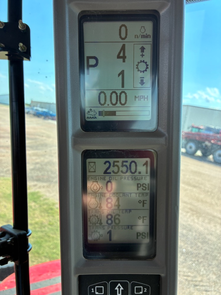 2550 hours, Front Tires: Firestone 520/85R46, Rear Tires: Firestone 520/85R46, PTO Horsepower: 354, Engine Horsepower: 370, Hitch: 3 Point with Quick Hitch , Hydraulics: 5 Rear Hydraulic Remotes, PTO: Large 1000, Luxury Cab, Powershift Transmission, Heated Ventilated Seat, Cold Weather Starting Package, Pro700 Display with Full Autosteer, High Capacity Hydraulic Pump, Electric Mirrors, Suspended Cab, Electric Adjust Armrest, Radar, Power Beyond and Motor Return, Front Weights, LED Cab Roof Work Light Package. Shedded.