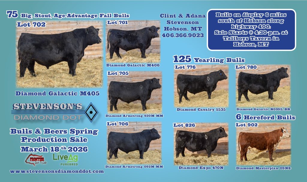 Stevenson’s Diamond Dot Bulls & Beers Spring Production Sale March 18, 2026